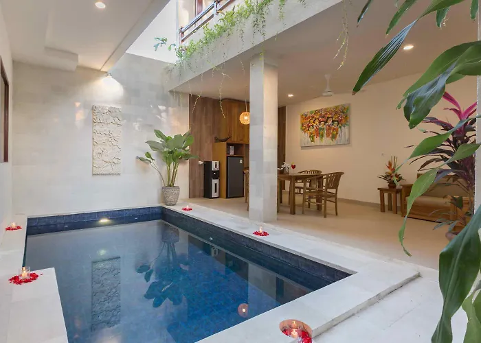 Остановившись в вилле, вы окажетесь в 10 минутах езды от Пляжа Бингин и в 5 км от Университета Удаяна. Близлежащие религиозные достопримечательности включают храм Улувату, в 7 км. Гости также могут посетить Пляж Дримлэнд в 15 минутах езды.